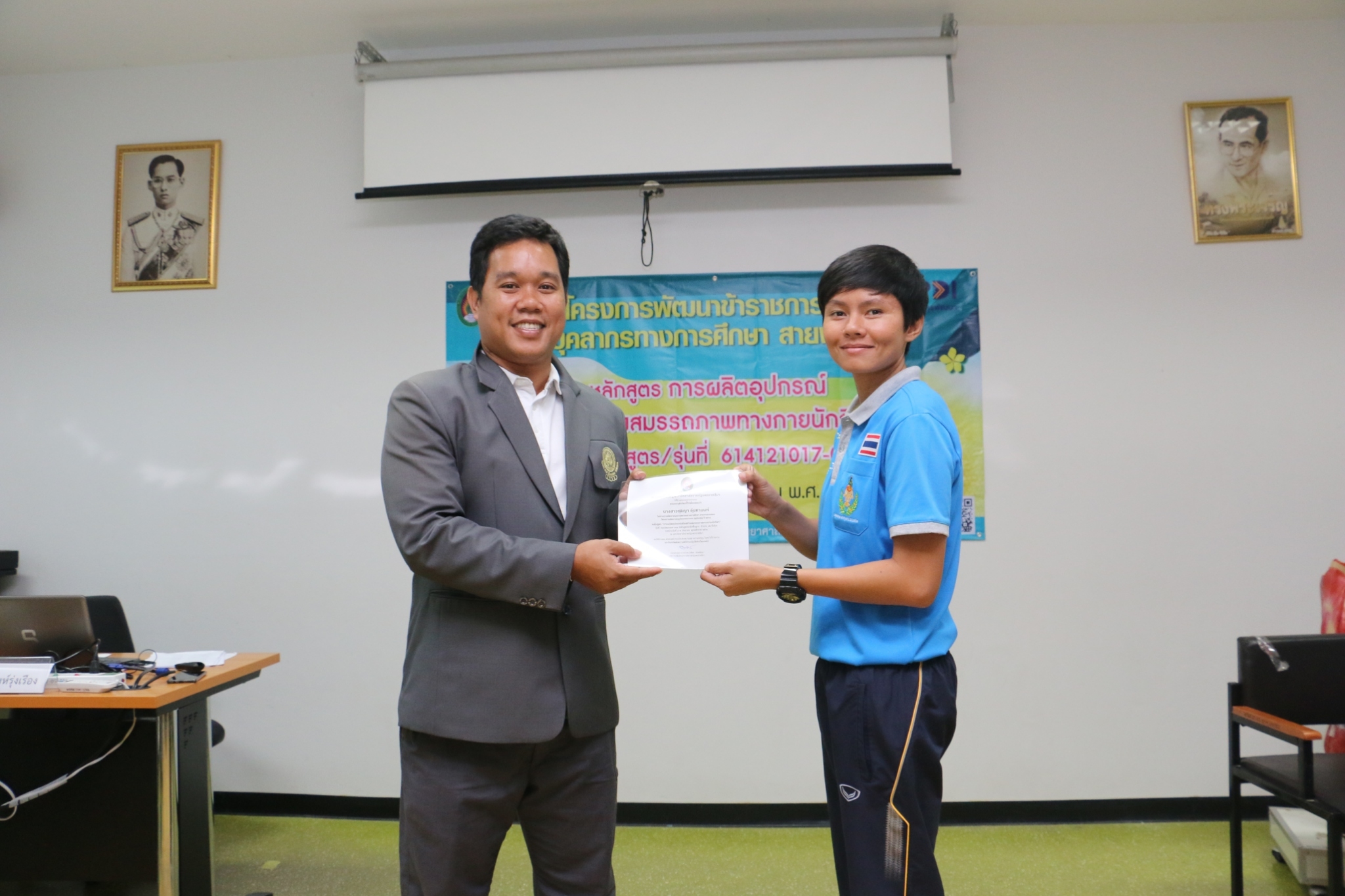หลักสูตร การผลิตอุปกรณ์เสริมสร้างสมรรถภาพทางกายนักกีฬา รุ่นที่ 001